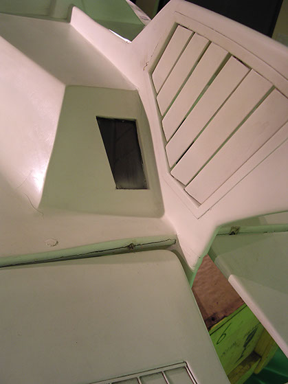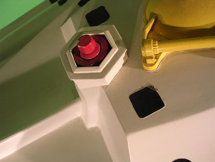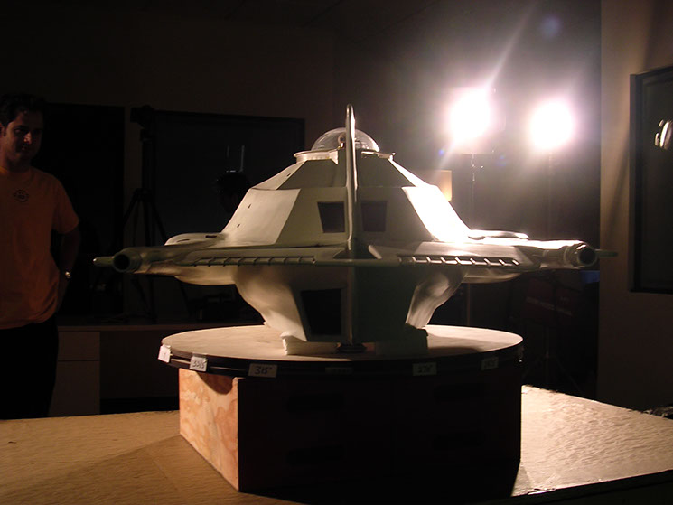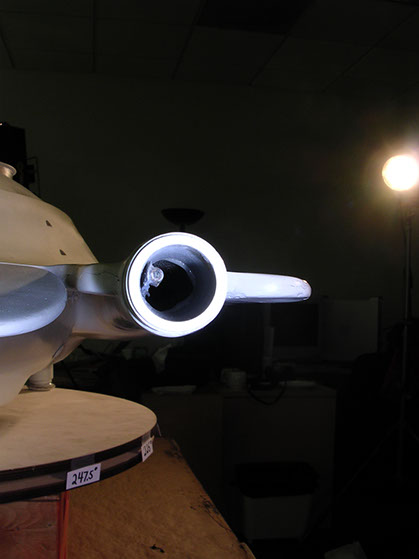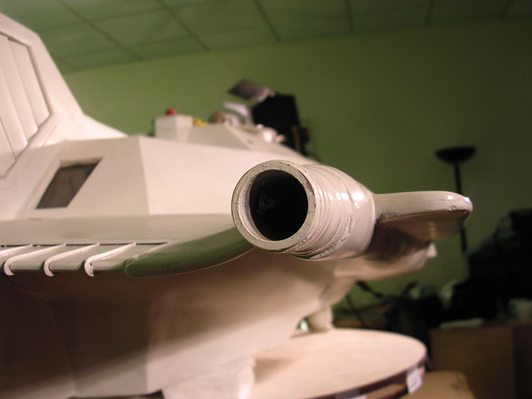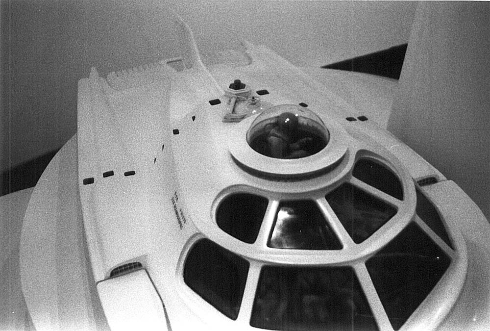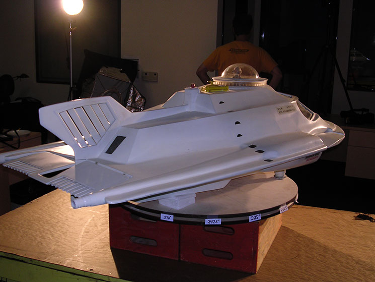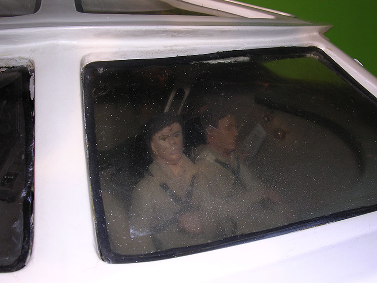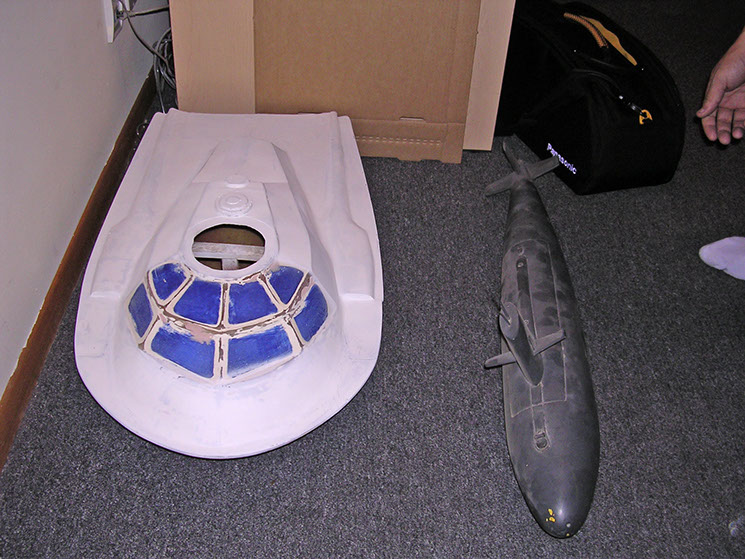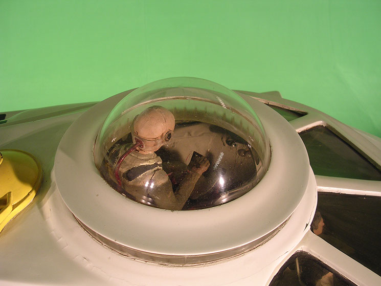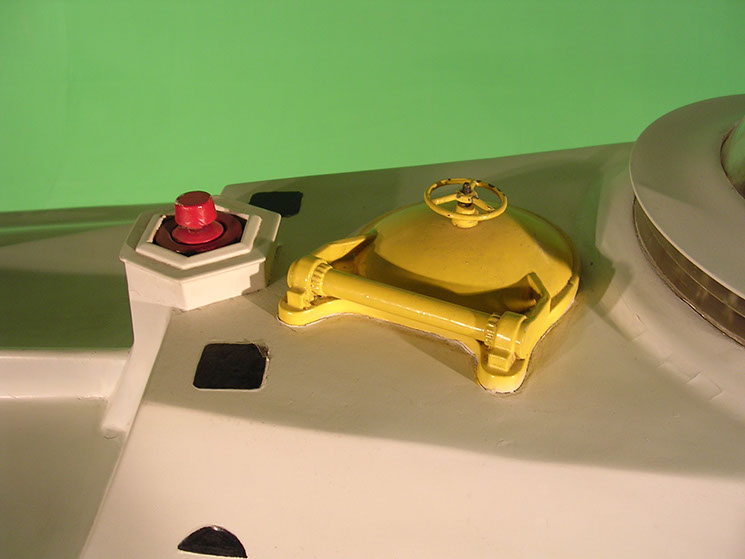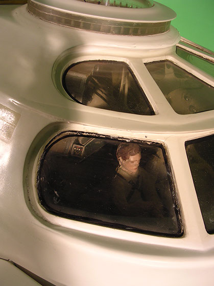 Three miniatures were made, a 5’ 'hero' (with full interior and figures), a 2½‘, and the smallest was 1½”. The first two have been sold in auctions, but the smallest was lost during filming. The model was set down to dry, and a crow flew off with it.